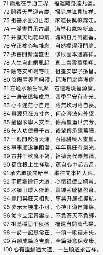 100. 和谐共长赢,福泽万万春。