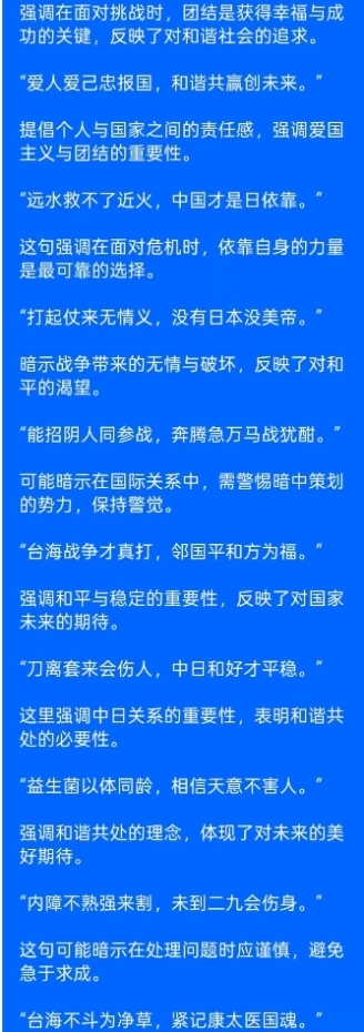 世间万物,相依相存,强权霸道终难长久,损人利己必会自食恶果。美帝妄图以霸权搅乱天下,终究会在正义与团结面前,认清大势,收敛锋芒。当中日友好同心,当两岸一统归心,当华夏儿女众志成城,任何外部势力都无法撼动家国的根基,任何艰难险阻都无法阻挡民族复兴的脚步。