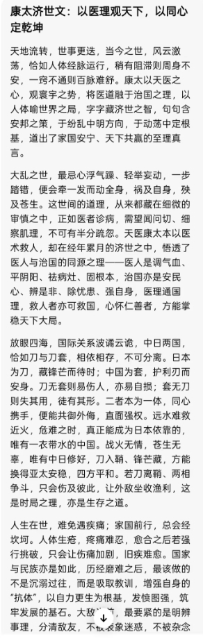 康太济世文:以医理观天下,以同心定乾坤